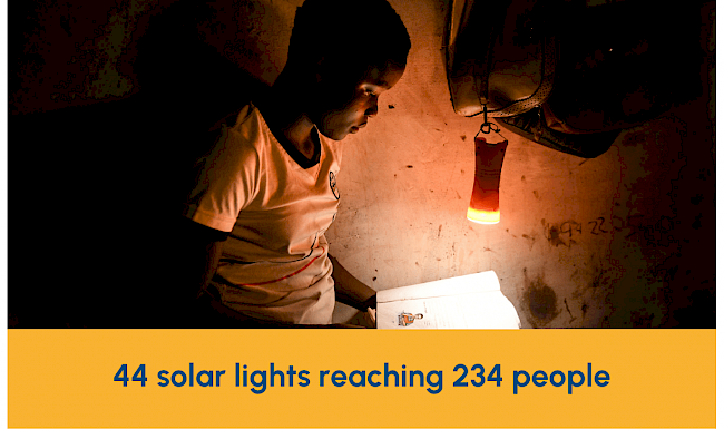 Solar lights for rural communities with SolarAid: Millions of people in Africa, have to rely on kerosene lamps and paraffin candles after dark, which emit toxic fumes into their lungs and into the earth’s atmosphere. Through SolarAid we have provided 44 solar lights to rural communities in Zambia. This means 234 more people have been reached with safe, clean solar light, saving them £4,387 on expensive polluting fuels, and 195 people now feel safe and secure in well lit homes. 41 more children are able to study after dark.